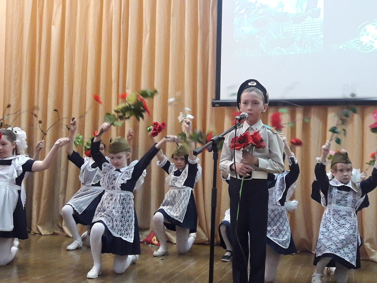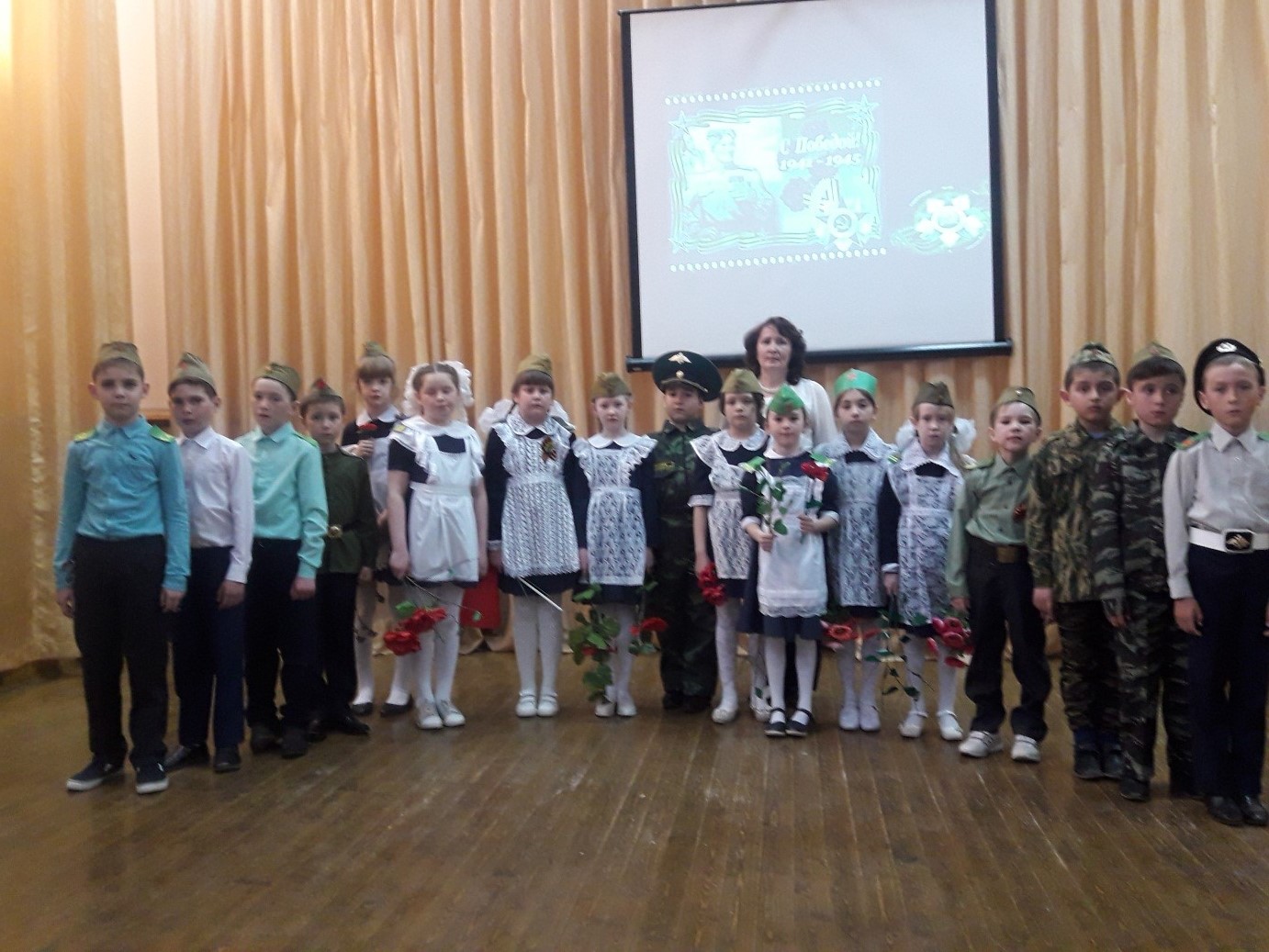 Были озвучены стихи, инсценированы песни военных лет, показаны отрывки лучших фильмов о войне. Учащиеся были полны внимания и было видно ,как не безразлична эта тема, как она болью отражается в душах детей. Ответственными за проведение данного мероприятия был 2в класс (классный руководитель Зарифуллина Р.Р.).